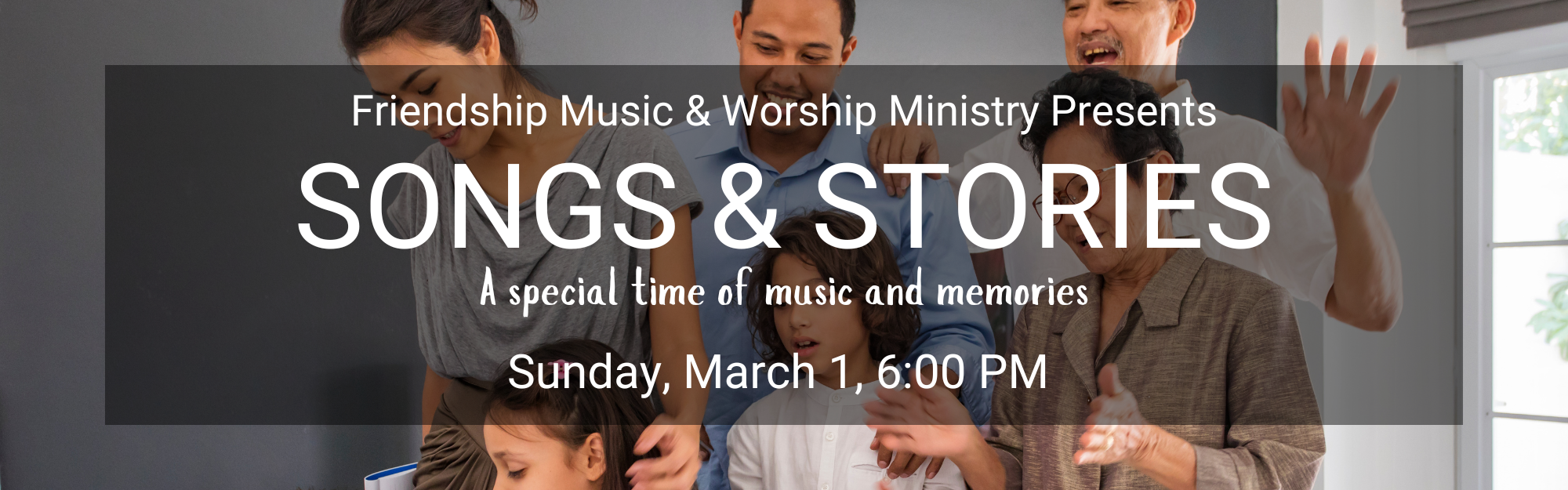 We also invite you to join us the first Sunday night of each month at 6:00 PM for, First Sunday Nights. Changes in this schedule will be posted on our Homepage.